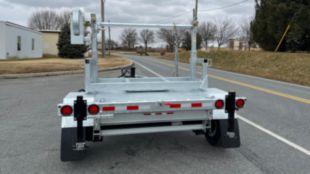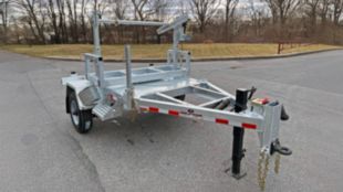 The Reelstrong PL-1RT8-DO Reel Trailer is a durable single-reel turret trailer designed for safely transporting and dispensing large cable reels in utility and fiber installation applications. It accommodates reels up to 96" diameter × 60" wide with approximately 8,000 lb capacity, providing versatility for a wide range of conductor and cable types. The trailer features a pinless PowerLock™ reel bar securement system and an oversized turret bearing that locks in 3-degree increments for smooth payout and precise reel positioning. Built on a heavy-duty structural frame with a 13,800 lb GVWR and 12,000 lb axle, it delivers dependable performance in demanding jobsite conditions. With its galvanized frame and low-maintenance design, the PL-1RT8-DO provides long service life and reliable cable handling in the field.