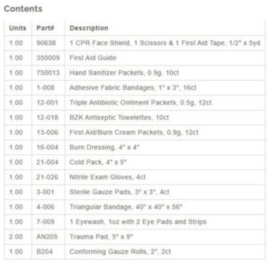 The First Aid Only 16 Unit 25 person ANSI A First Aid Kit in a plastic case contains 82 pieces to treat on the minor injuries. The kit contents meets both ANSI and OSHA standards and are sufficient to treat up to 25 people. The weatherproof storage case has two latches to keep the case closed and a handle to facilitate transportation to the site of an injury. The case also includes tabs for mounting the case on a wall or other flat vertical surface. The kit is ideal for small offices, vehicles or worksites.