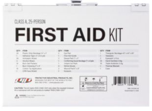 Class A first aid kits have contents designed to deal with the most common types of workplace injuries. Comes with 110 pieces, metal case, wall mountable, lightweight and is ideal for use in the office, vehicle or on the job site. Pouch design ensures contents stay in place.